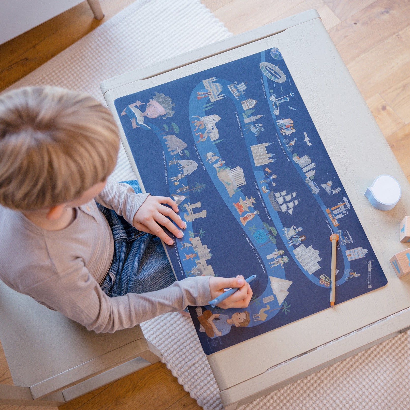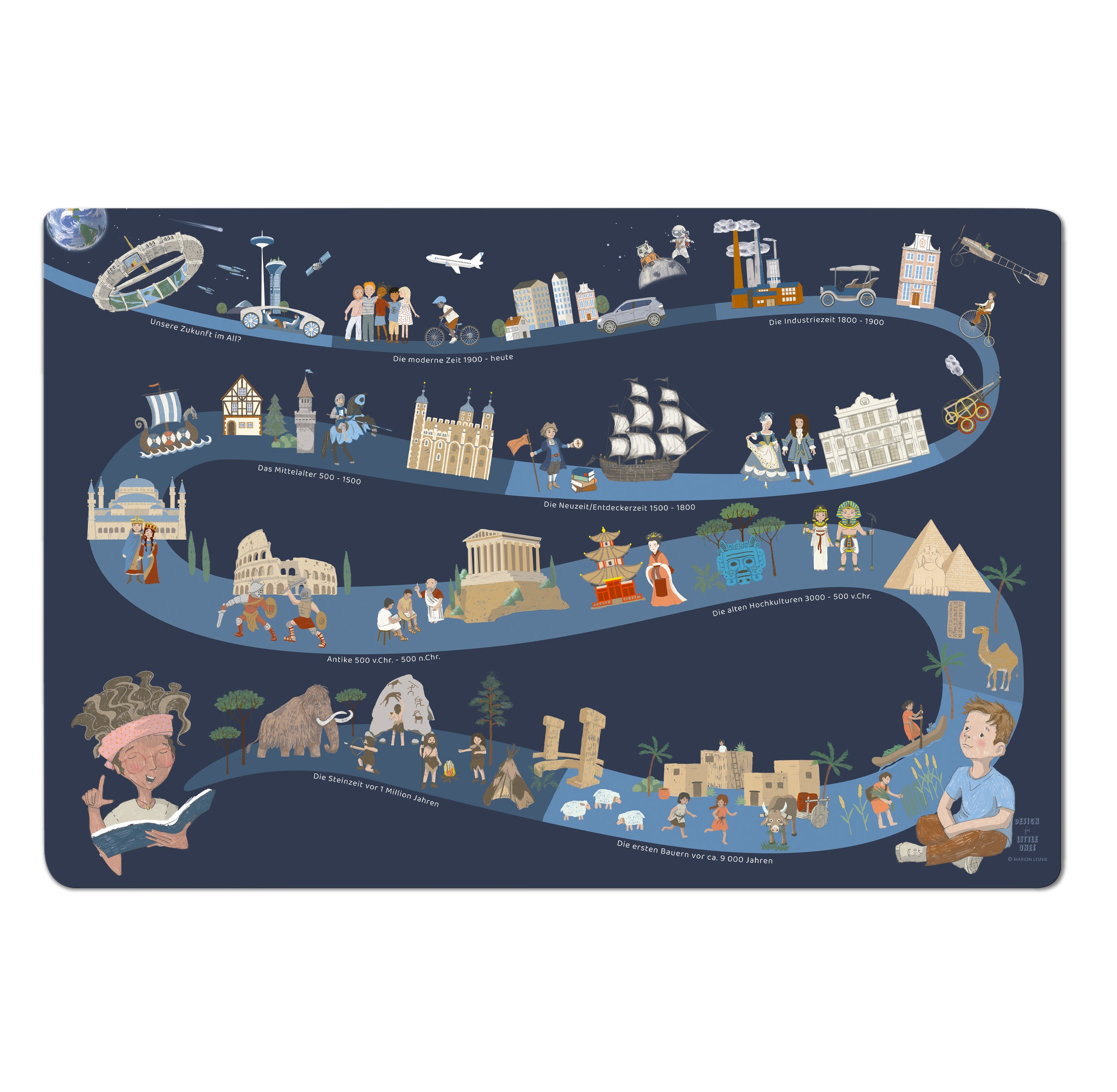 Diese Schreibtischunterlage ist weit mehr als nur ein Untergrund für Hausaufgaben. Sie ist ein ständiger Gesprächsanlass, ein visuelles Nachschlagewerk und ein unerschöpflicher Inspirationsquell. Fördern Sie spielerisch historisches Verständnis, regen Sie die Neugier an großen Zusammenhängen an und unterstützen Sie Ihr Kind dabei, die Welt in ihrer ganzen Komplexität und Schönheit zu erfassen.